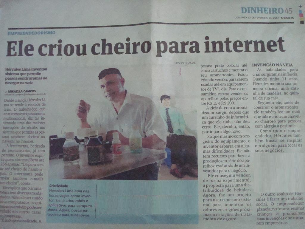 ![]() Hercules Lima, CEO, o criador da Tecnologia Aromatronics, é formado pela Universidade de Uberda, MG, autodidata em eletrônica, TI, robótica, desenvolvimento 3D em Blender e Unity. Tem mais de 21 anos no administrativo da VALE e quase 3 anos na Logística da Coca-Cola. Mais detalhes sobre ele no Currículo de Hercules Lima. |